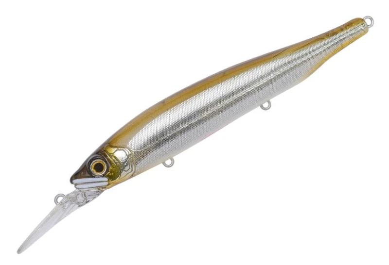 - Определи целевую рыбу: для судака и окуня выбирай минноу вроде GAN CRAFT REST 128 #14, имитирующие уклейку или верховку.